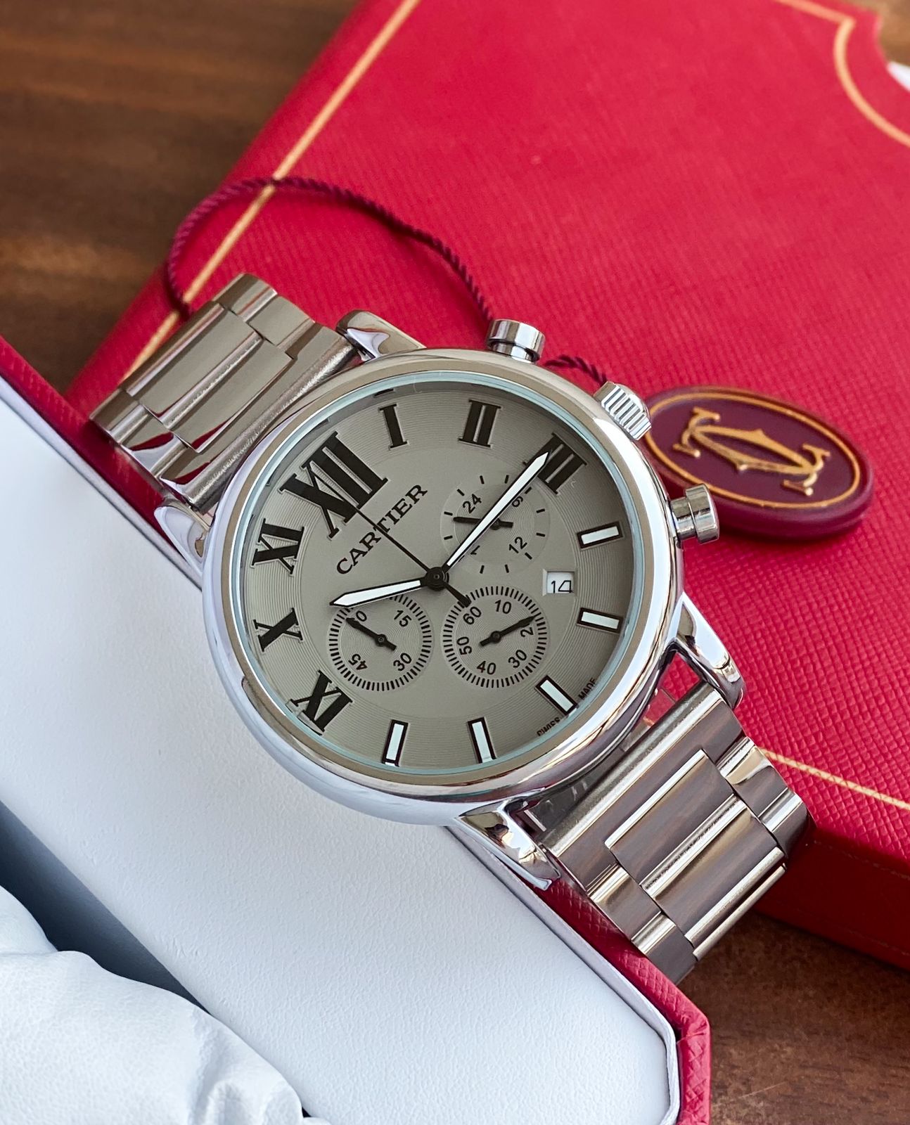 Imported premium timepiece silver metal strap for men
