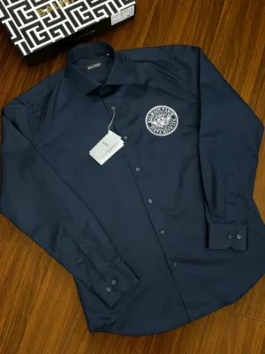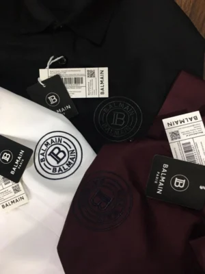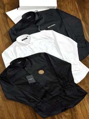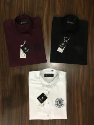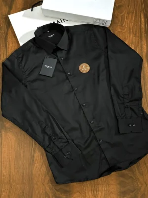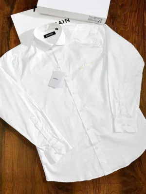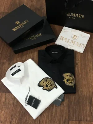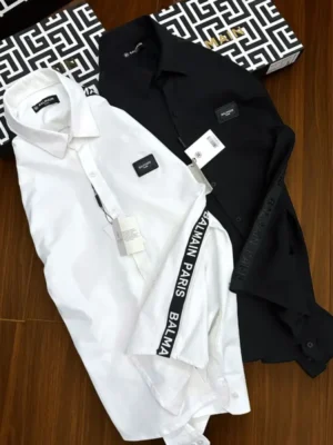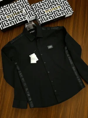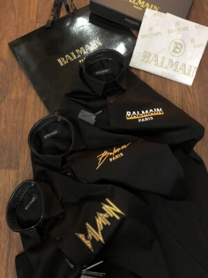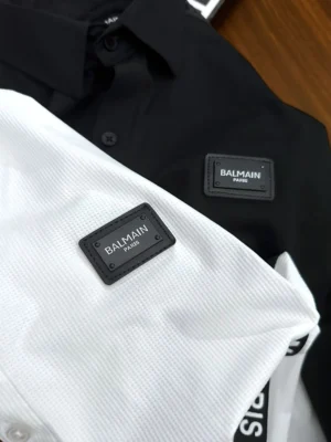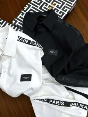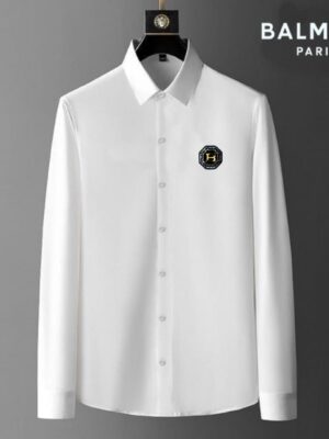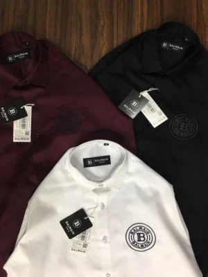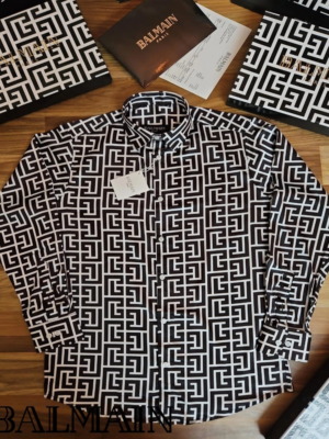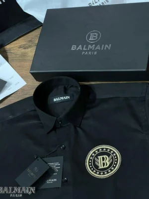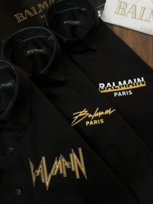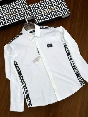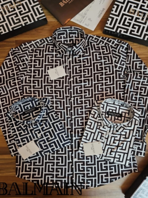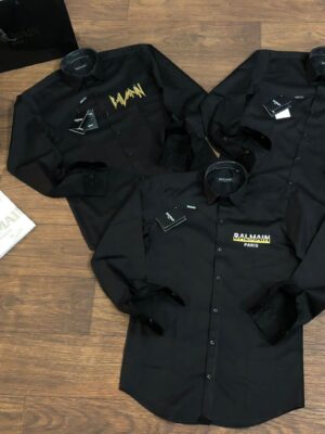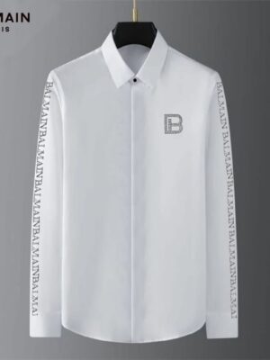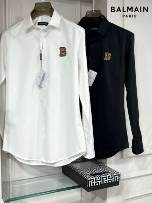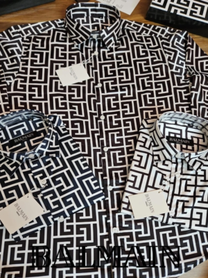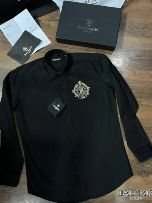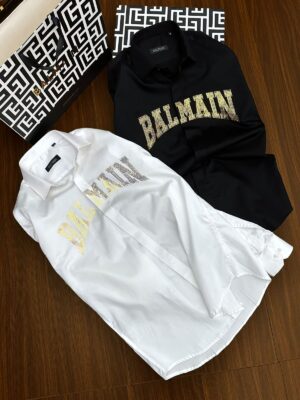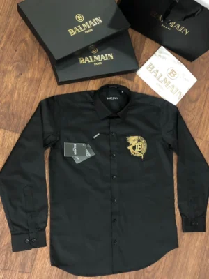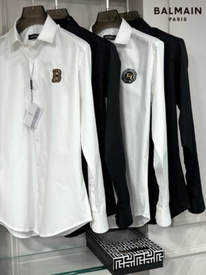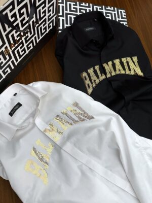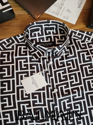 - Balmain Paris premium shirt for men. Approx. length: M is 98 inch chest Spread collar; three-button placket. Signature check facing. Straight hem. Cotton Machine wash, dry wash. Imported and very premium article with all bar code scannable.