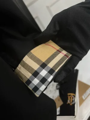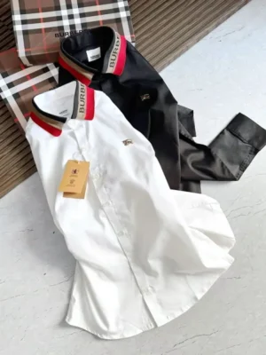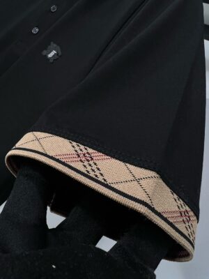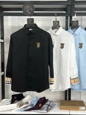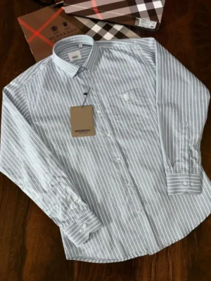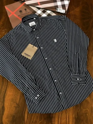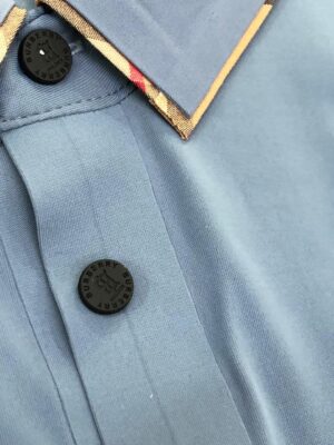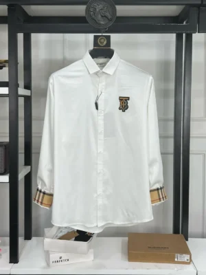 - Burberry premium shirt for men. Approx. length: M is 86 inch chest Spread collar; three-button placket. Signature check facing. Straight hem. Cotton Machine wash, dry wash. Imported and very premium article with all bar code scannable.