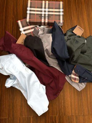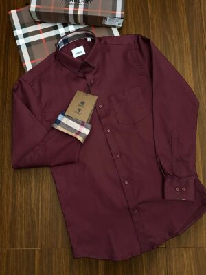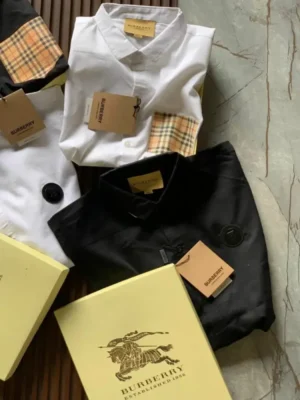 - Burberry premium shirt for men. Approx. length: M is 52 inch chest Spread collar; three-button placket. Signature check facing. Straight hem. Cotton Machine wash, dry wash. Imported and very premium article with all bar code scannable.
