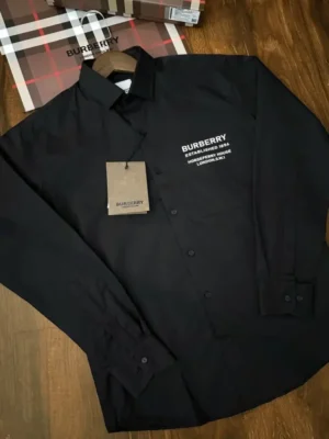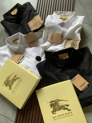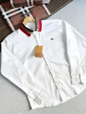- Burberry luxury party wear premium shirt for men. Approx. length: M is 38 inch chest Spread collar; three-button placket. Signature check facing. Straight hem. Cotton Machine wash, dry flat. Imported and very premium article with all bar code scannable.