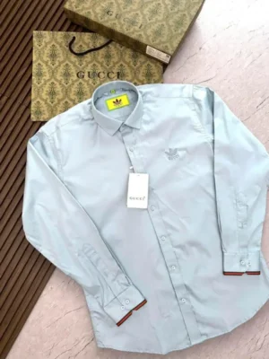 - Gucci premium shirt for men. Approx. length: M is 84 inch chest Spread collar; three-button placket. Signature check facing. Straight hem. Cotton Machine wash, dry wash. Imported and very premium article with all bar code scannable.